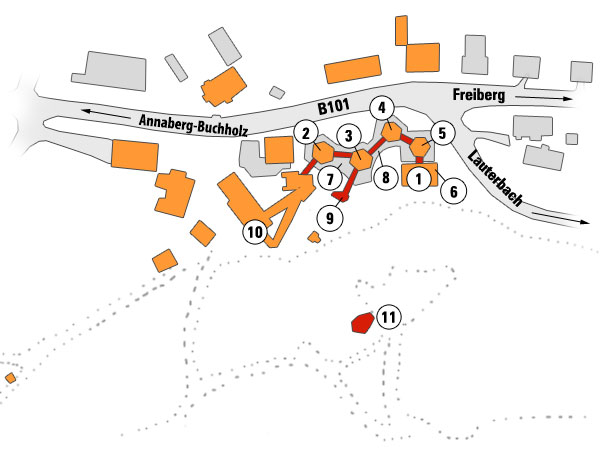 11 Tagebruch mit Sprengmittellager (nur im Rahmen geführter Rundgänge zugänglich)